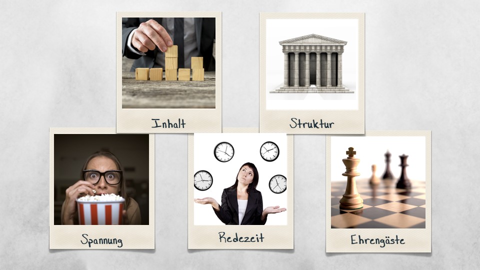 Je nach Ereignis weichen natürlich auch die Themen leicht voneinander ab, die Grundstruktur deiner Eröffnungsrede bleibt aber immer gleich.
