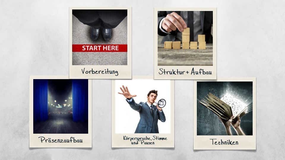 Wichtige Punkte beim Halten einer Rede: Vorbereitung, Struktur & Aufbau, Präsenzaufbau, Körpersprache, Stimme & Pausen und Techniken