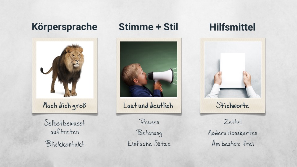 3 wichtige Bereiche beim Rede Halten: Körpersprache, Stimme & Stil und Hilfsmittel