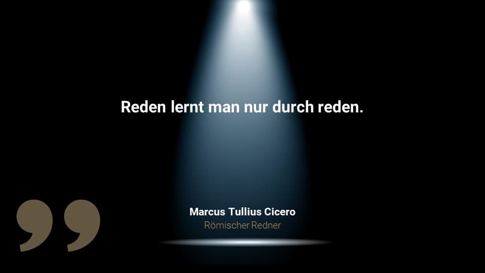 Zitat von Cicero auf dunklem Hintergrund mit Scheinwerfer: Reden lernt man nur durch reden