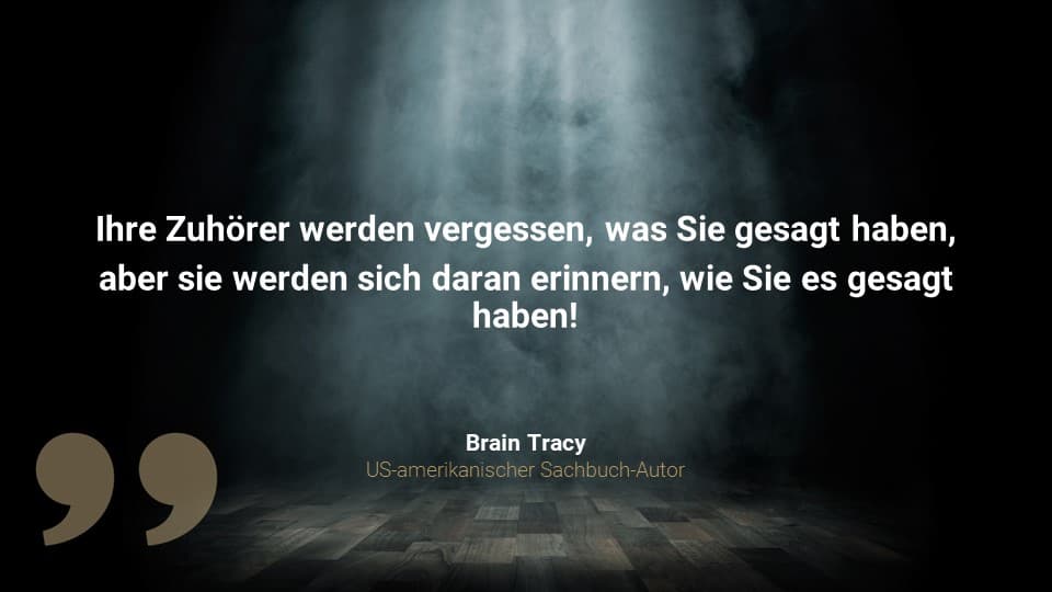 Dale Carnegie: „Es ist der Redner, nicht der Inhalt, der die Rede interessant macht.“ Es gibt großartige Reden, die aber unter der Körpersprache und dem rhetorischen Auftritt des Redners gelitten haben.